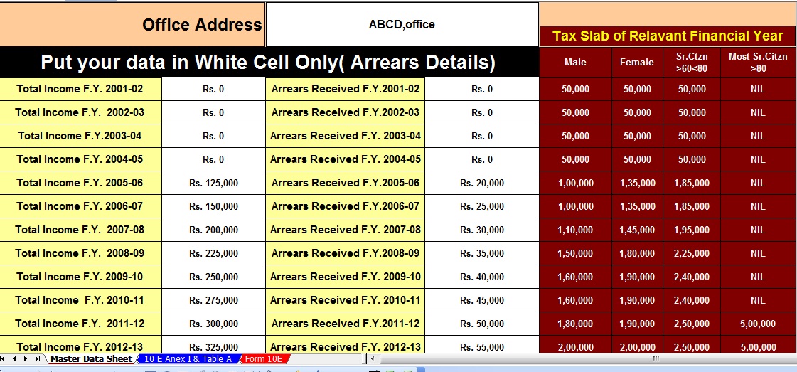 Download Automatic Arrears Relief Calculator with Form10E from the F.Y.2000-01 to F.Y.2016-17