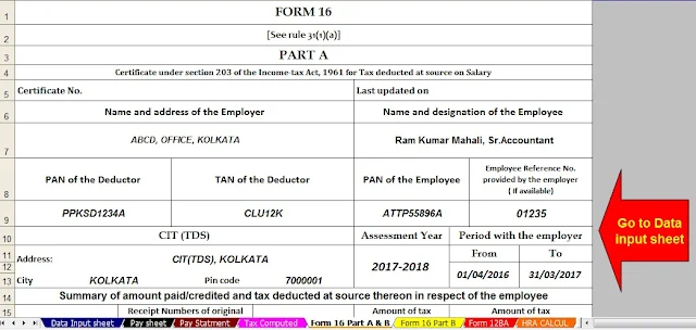 Download All in One Income Tax Preparation Excel Based Software for Only Private/Non-Govt employees for F.Y.20116-17 & A.Y.2017-18. [This Excel Utility can prepare at a time your Tax Computed Sheet + Individual Salary Sheet + Individual Salary Structure + Automatic H.R.A. Calculation + Automatic Form 12 BA + Automatic Form 16 Part A&B and Form 16 Part B for F.Y.2016-17]
