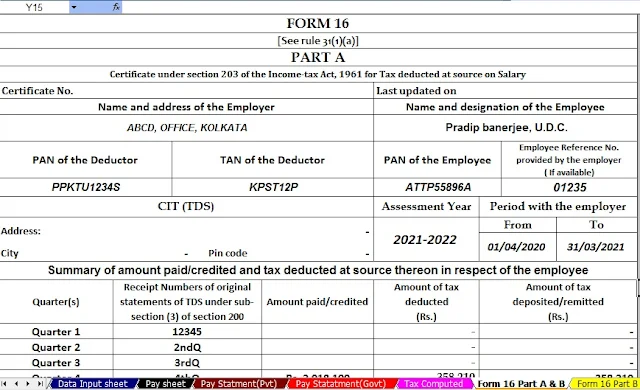 [This Excel The utility can prepare at a time Income Tax Computed Sheet + Individual SalaryStructure as per the Govt and Private Salary Pattern+ Automated Income Tax Arrears Relief Calculator U/s 89(1) with Form 10E from the F.Y.2000-01 to F.Y.2020-21 + Automated Income Tax Revised Form 16 Part A&B and Revised Form 16 Part B in new format ]