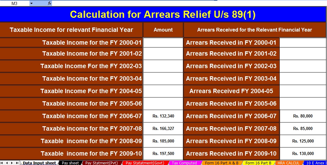 3) Automated Income Tax Arrears Relief Calculator U/s 89(1) with Form 10E from the F.Y.2000-01 to F.Y.2020-21 (Updated Version)